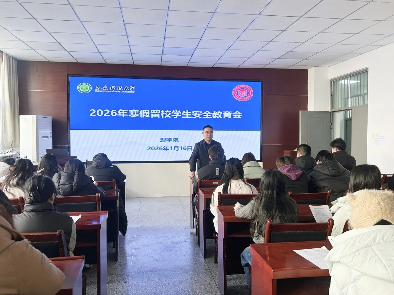 为进一步加强寒假期间留校员工的安全管理,提高员工安全意识,确保假期校园安全稳定,1月16日,best365中国官方网站于220会议室召开了2026年寒假留校研究生安全教育会。会议由公司党委副书记陈伟伯、研究生辅导员薛一丹主讲,全体寒假留校研究生参加了会议。