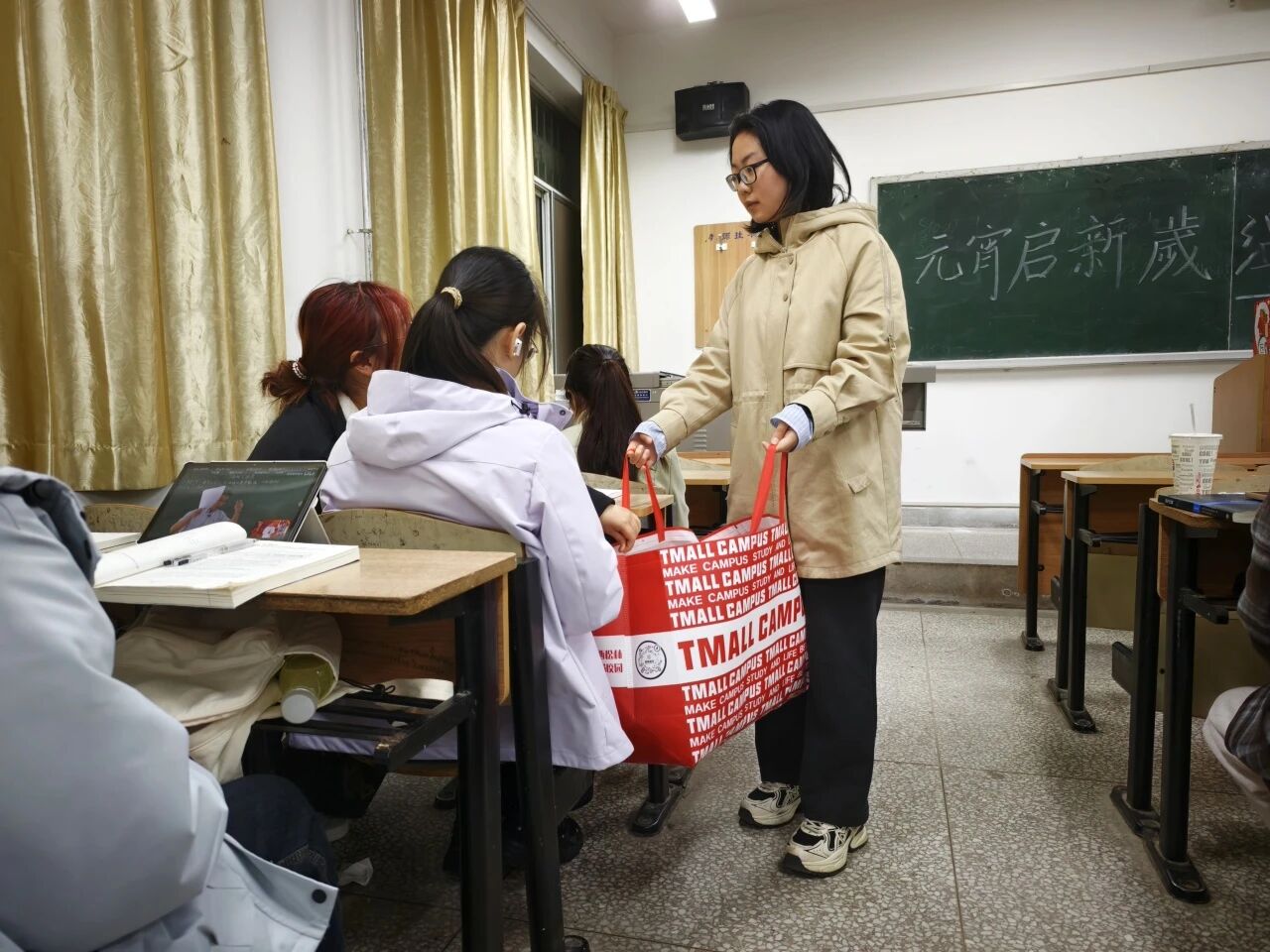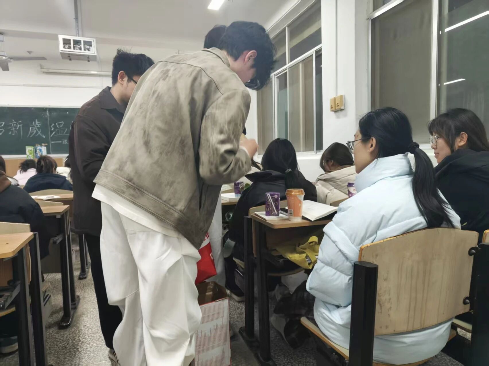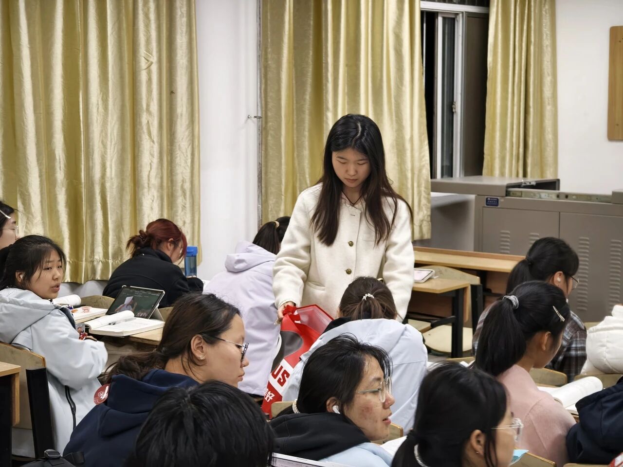 本科生慰问活动在公司一年级和二年级自习教室有序开展,两位老师及院团委员工会干部共同参与。院主席团成员姚如畅首先代表员工组织发言,向同学们致以节日祝福,并分享了自己在公司学习成长的感悟与收获,鼓励大家珍惜大学时光,在专业学习之余积极参与集体活动。