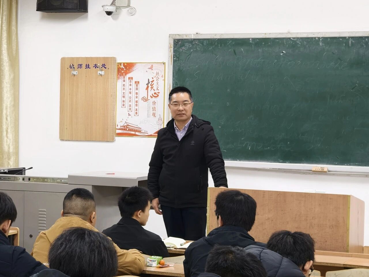 走访过程中,陈伟伯在多个教室进行发言。他首先向同学们致以元宵节的亲切问候,祝愿大家在新的一年里学业进步、生活圆满。谈到英语四级考试,他叮嘱同学们要提前规划、认真备考,充分利用好早读时间打下坚实基础。针对有考研意向的同学,他鼓励大家坚定信心、早做准备,将节日的团圆喜悦转化为追求梦想的动力。发言最后,他还特别提醒同学们提高防范意识,谨防各类诈骗,确保度过一个平安祥和的新学期。