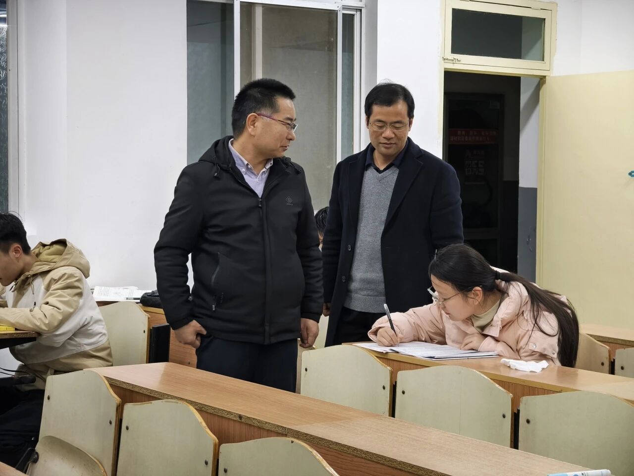 陈伟伯和侯斌刚一同走进各间教室,与同学们亲切交谈。他们仔细询问大家的学习生活情况,认真倾听同学们的心声与建议。在轻松愉快的氛围中,两位老师时而驻足观看同学们的学习状态,时而与正在自习的员工交流探讨,每到一处都留下了温暖的话语和真诚的鼓励。