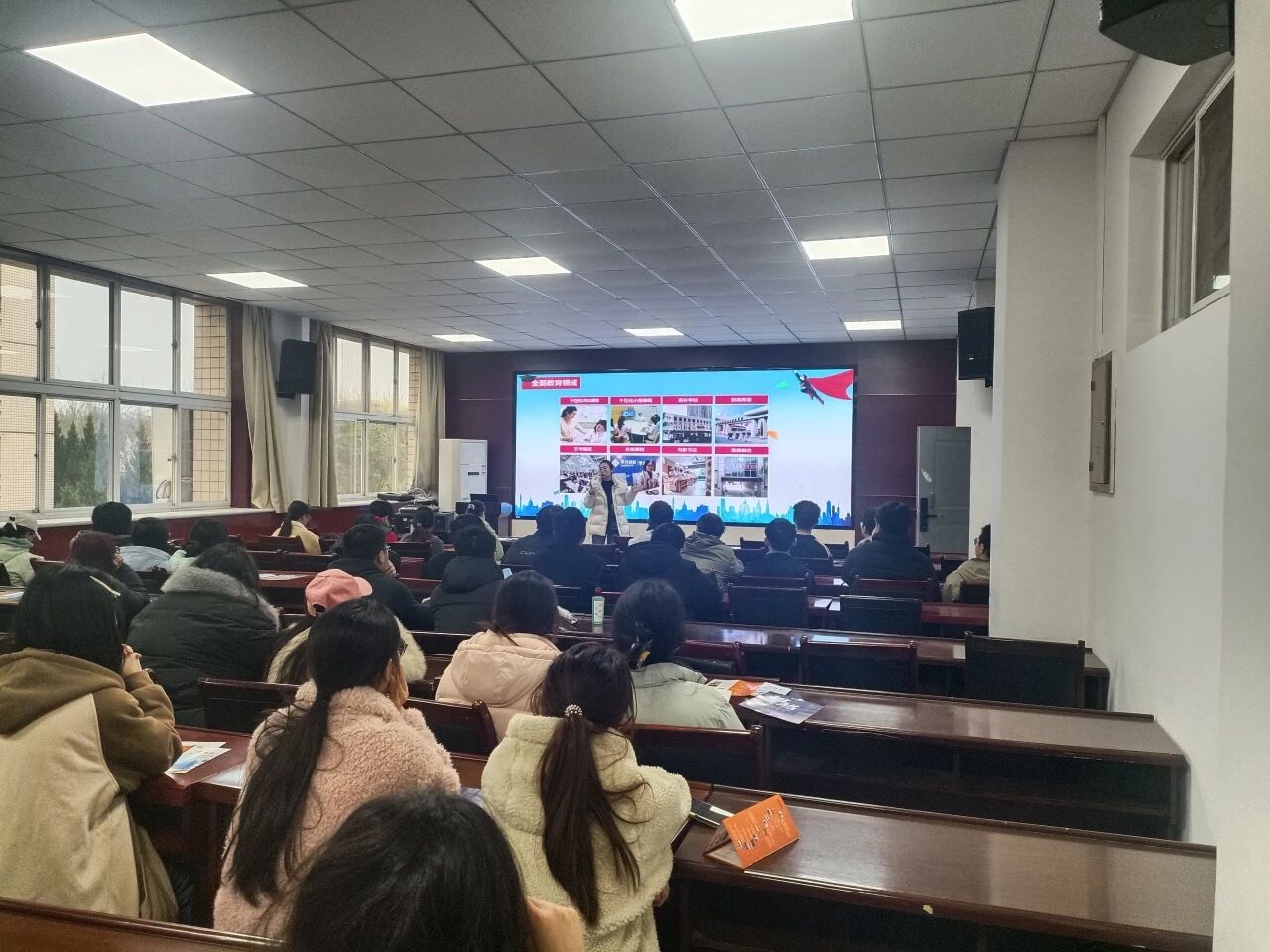 首先,负责人聚焦教育行业现状与企业核心竞争力,系统介绍了学大教育在个性化教育领域的深耕成果。她通过详实的数据和案例,展示了集团在K12基础教育、素质教育及在线教育板块的全方位布局,并强调了企业“以人为本”的教育理念。同时,她还分享了集团近年来在教研创新与团队培养体系上的投入,让在场员工对企业的行业地位和发展前景有了直观而立体的认识。