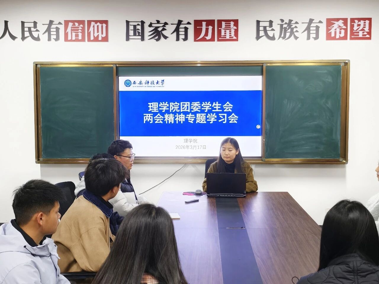 随后,同学们集体观看了两会相关视频报道,并围绕两会热点话题,特别是结合自身专业学习实际展开了热烈交流与讨论。大家纷纷表示,通过此次学习,对国家发展的新成就、新目标有了更清晰的认识,倍感振奋、深受鼓舞,未来将以更加饱满的热情和更加务实的作风投入到学习工作中,努力提升自身综合素质,为实现中华民族伟大复兴的中国梦贡献青春力量。