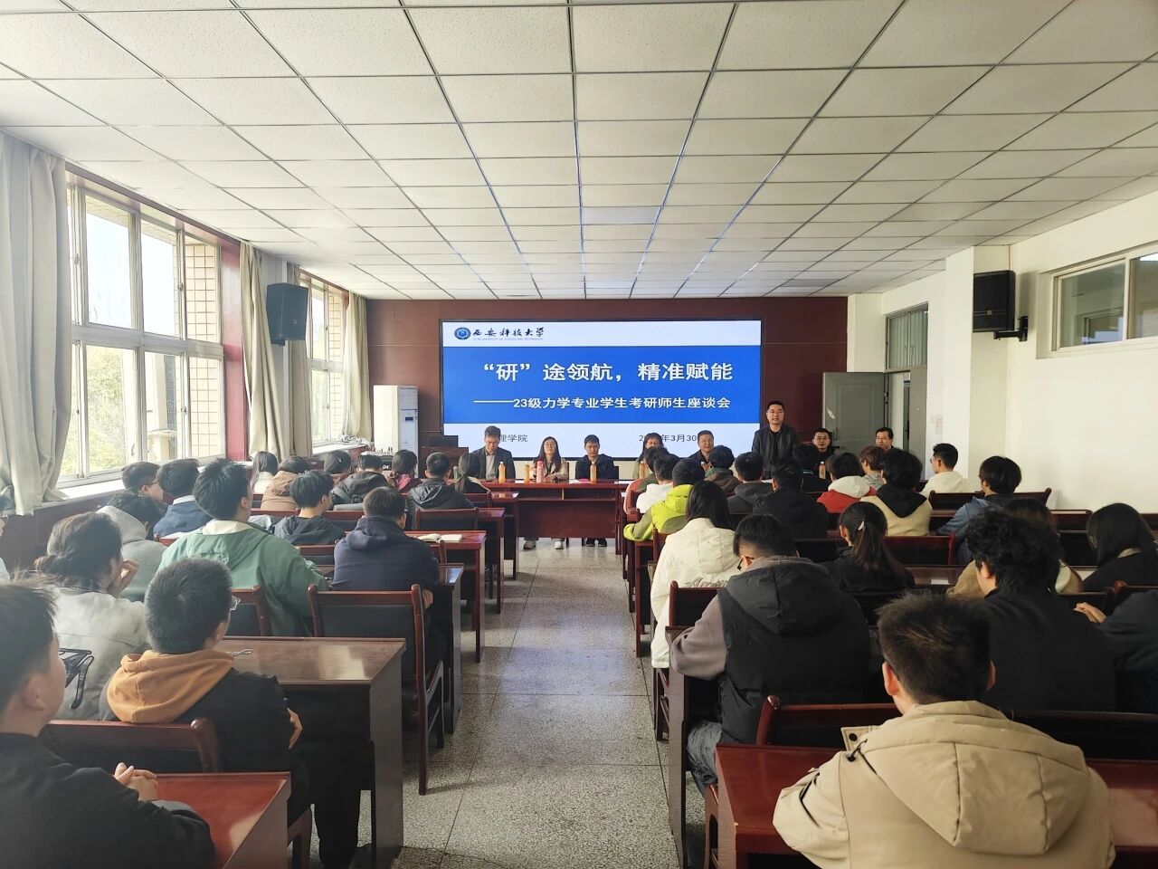 随后,力学系多位导师结合自身教学与科研经验,围绕院校选择、专业方向、复习策略等内容与同学们展开深入交流。老师们从近年考研趋势出发,分析了力学专业考研的特点与难点,提醒同学们在备考中夯实专业基础、注重知识体系的系统构建。部分老师还结合往届员工的典型案例,分享了高效复习的时间规划与心态调整建议,鼓励同学们尽早启动、稳步推进。