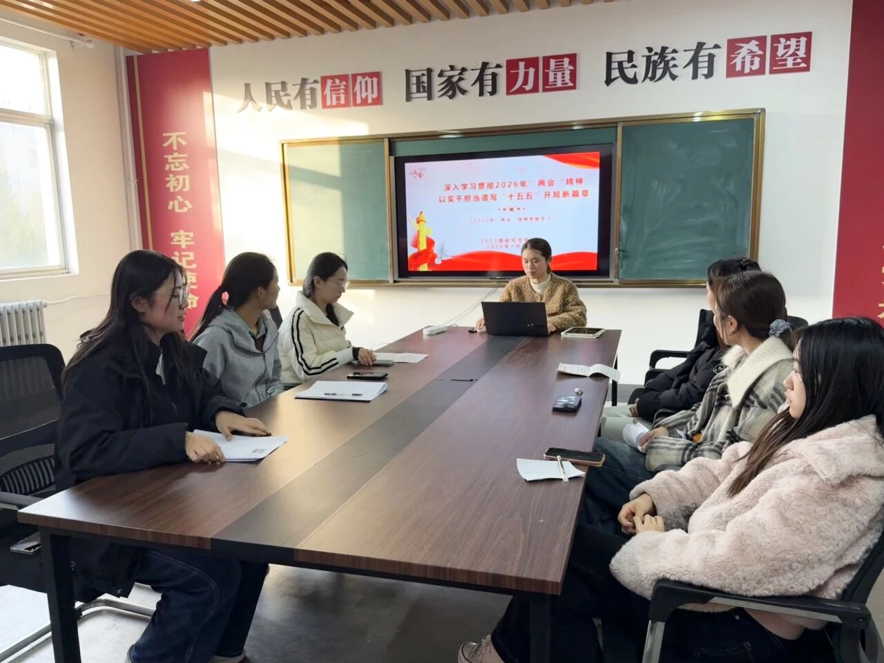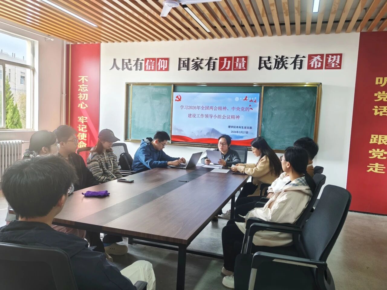 本科生党支部学习环节,薛一丹带领全体党员认真学习2026年全国两会重要内容,重点围绕政府工作报告中关于教育、科技、人才一体推进的战略部署进行系统解读。她结合本科生学习阶段特点,勉励同学们夯实专业基础,增强使命意识,把个人成长融入国家发展大局,在知行合一中锤炼本领、坚定信念。